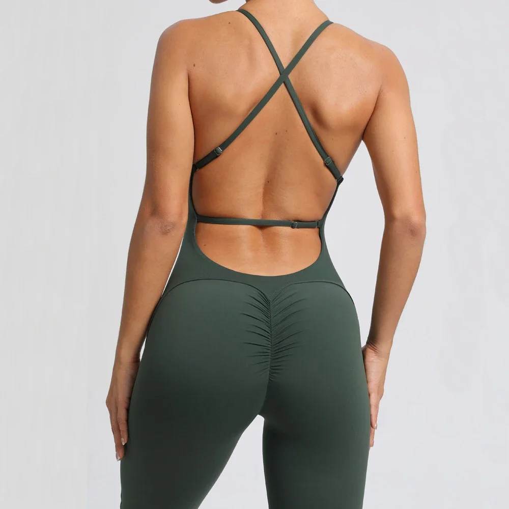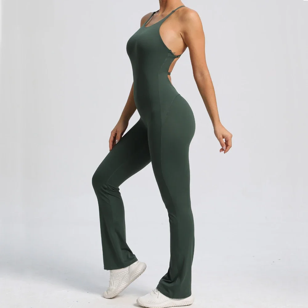 1-teiliger Rückenfreier Flared Fitness Jumpsuit
